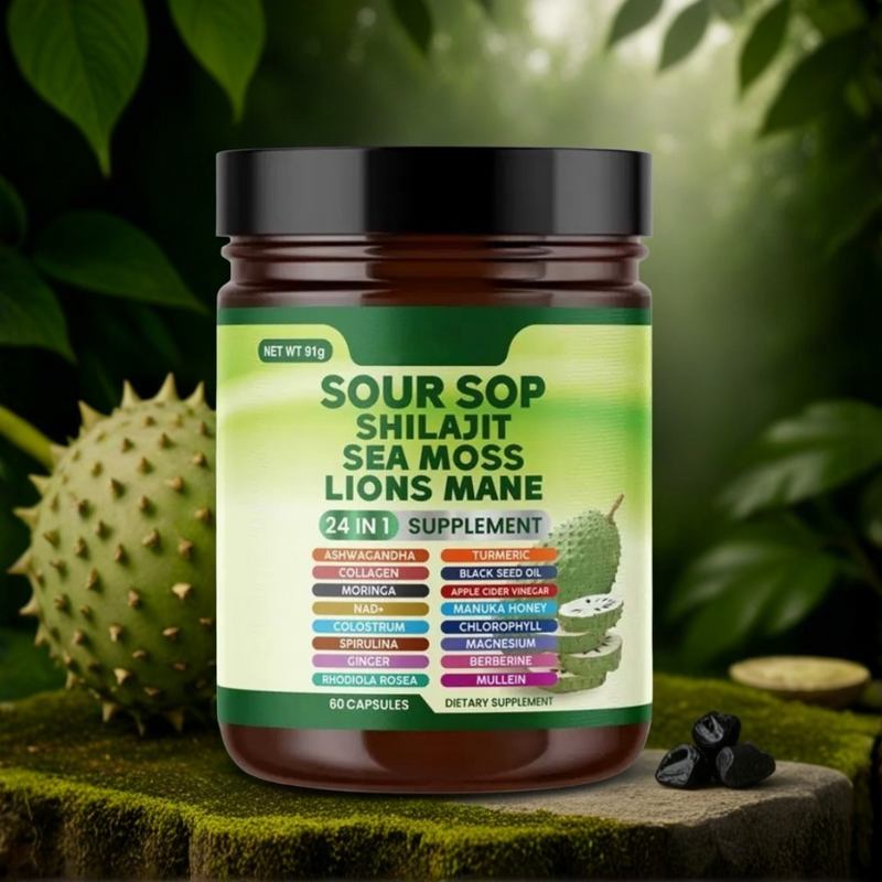Shilajit with fulvic acid helps support natural cellular energy. Rhodiola and B-vitaminβrich superfoods like soursop round it out, giving you steady daytime vitality without the crash.